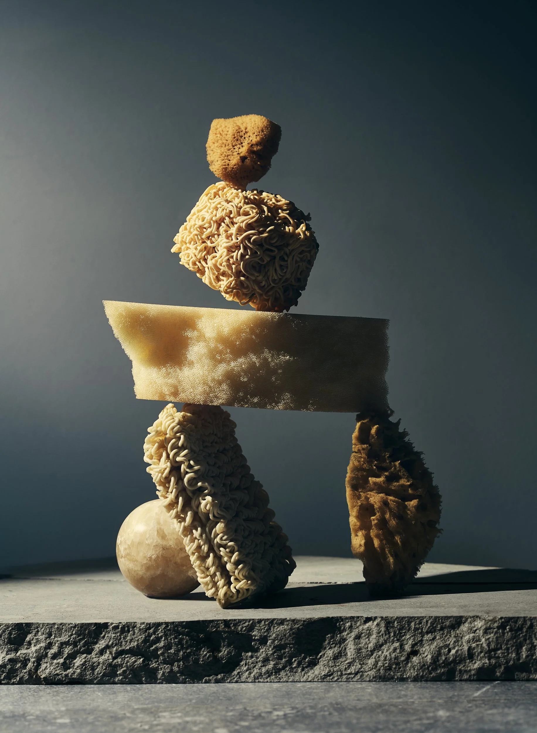 När jag arbetar med en stylist börjar vi alltid med ett spånmöte och skapar en moodboard för att säkerställa att vi vill åt samma riktning. Stylisten ansvarar sedan för att införskaffa och välja ut de föremål och detaljer som vi bestämt under våra tidigare möten, där den övergripande idén skissats upp. I studion arbetar vi lekfullt med komposition och helhet, medan jag fokuserar på att forma ljuset och fånga berättelsen i varje bild.